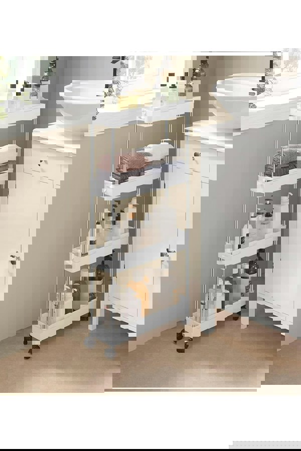 Introduce this brilliant storage solution to your home for a more organized and clutter-free lifestyle. Organize your bathroom or laundry room with this stylish cabinet in white finish that blends in with your decor. It makes sure that every corner is utilized to the fullest. Made from plastic, you can trust its durability and strength in holding your bathroom and kitchen essentials.
