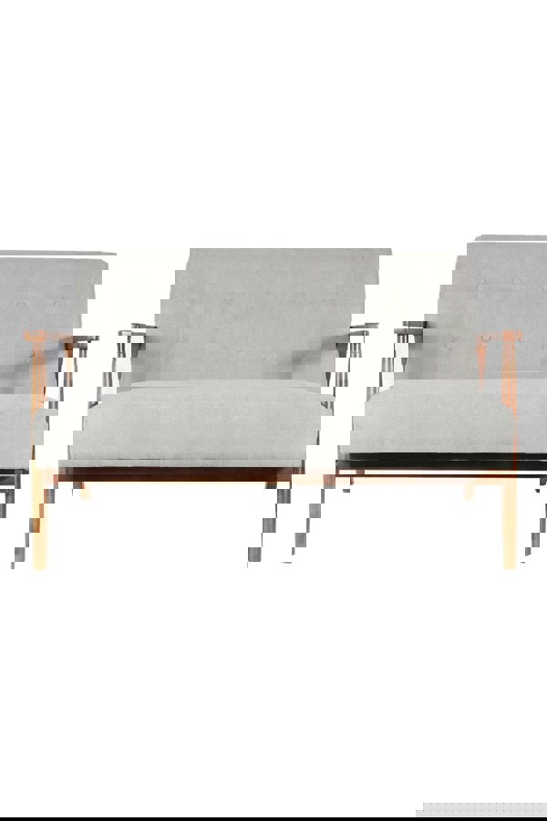 The light grey upholstery complements the natural finish of the wood to create a neutral accent that works perfectly with any style of decor