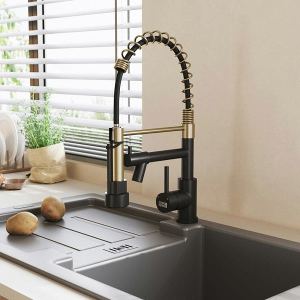 The modern finish and smooth lines of this Livingandhome kitchen mixer tap will add a touch of sophistication to the kitchen. Boasting its versatility, you can choose between the pull down sprayer and the pot filler according to different kinds of kitchen tasks. The tap features a pull out spout swivels 360° for a full range on a flexible hose, putting you in full control of the water's direction, as well as a swivel tap that's handy for cleaning bulkier items such as saucepans. Both of them can be rotated at all angles, so you can point the faucet the way you want. Its single lever handle softly turns to control the desired water flow while the stainless steel construction of the tap ensures a long life and durable product.