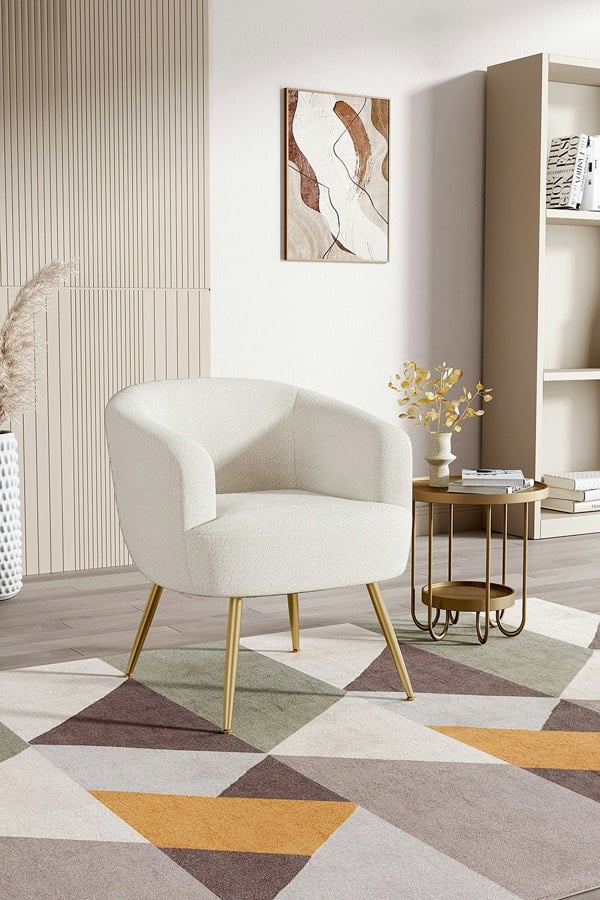 Sink into the cloud-like softness with the White Teddy Fabric Armchair from Livingandhome. Constructed from a solid wood frame, it features a soft silhouette with rounded arms and a tight back filled with dense foam for an overstuffed look that invites you to lounge or read. It is also fitted with four slim, tapered legs set at a slant. Its contemporary profile is sure to make it an ideal addition to your living room. This item requires assembly