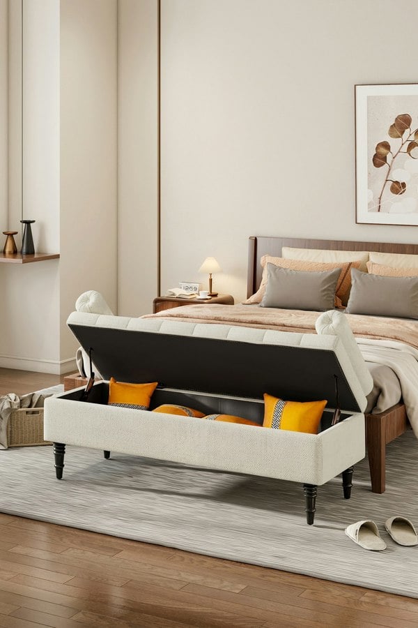 Add this graceful storage bench from Livingandhome to your house to complete the makeover! It will not only offer space to sneakily stow folded blankets at the end of your bed or toys in the living room, but lend style to your home ensemble. Covered in luxurious fabric, the bench makes a comfortable extra spot for sitting. The 2 side bolstered pillows add a vintage feel to the bench, and your head will appreciate its support.