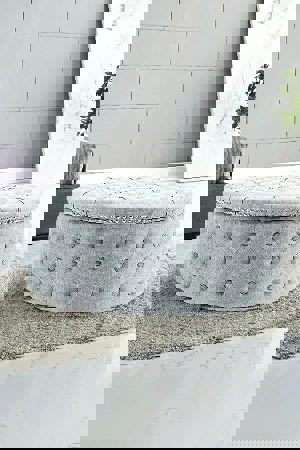 This Livingandhome round ottoman has a seedpod-of-lotus appearance and a wide seat to sit cross-legged, making it the perfect spot for meditations. With the shiny nailhead trim and deep buttoned surface, it gives off glam and style even not in use. Moreover, the padded cushion and soft linen fabric make this bench cool for the summer and warm for the winter. And don’t ignore the short yet strong legs under it since they are shouldering the burden of stability and sturdiness. (Tip :This item requires assembly)