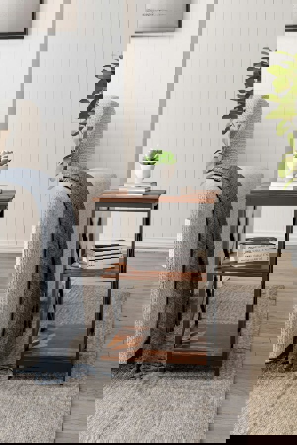 Place this Livingandhome compact side table next to the bed, sofa, or any other preferred spot to create a cozy nook. Its minimalist design is complemented by the clean lines, ensuring that it will not dominate the room, yet it offers a convenient top for your cup, mobile phone, snacks, or any item you want to keep within reach. Additionally, the table provides an ideal display area with 2 shelves for vases, art sculptures, and books, adding warmth and an artistic touch to your space.