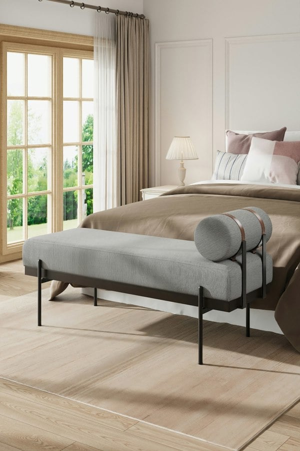 This bench blends classic and modern design, featuring a simple yet elegant look that enhances any home decor. Its surface is meticulously adorned with chenille material, offering not only a soft touch but also a rich sense of texture, bringing a touch of luxury to any space. Filled with high-density sponge, it ensures excellent support and comfort for extended periods of sitting. Moreover, the bench is constructed from sturdy wooden boards and a metal frame, remaining stable and durable. Whether you are changing shoes, taking a short rest, or enjoying a relaxing moment, it serves as an ideal companion. (Tip ï¼This item requires assemblyï¼