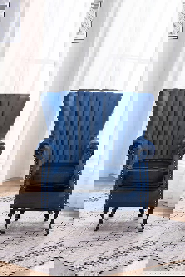 Living and Home brings a refined statement to your seating area with the Vintage Velvet Wing Back Armchair with Studs. Upholstered in soft velvet, it creates a considered, dressed look for a living room or reading corner where comfort and detail matter.