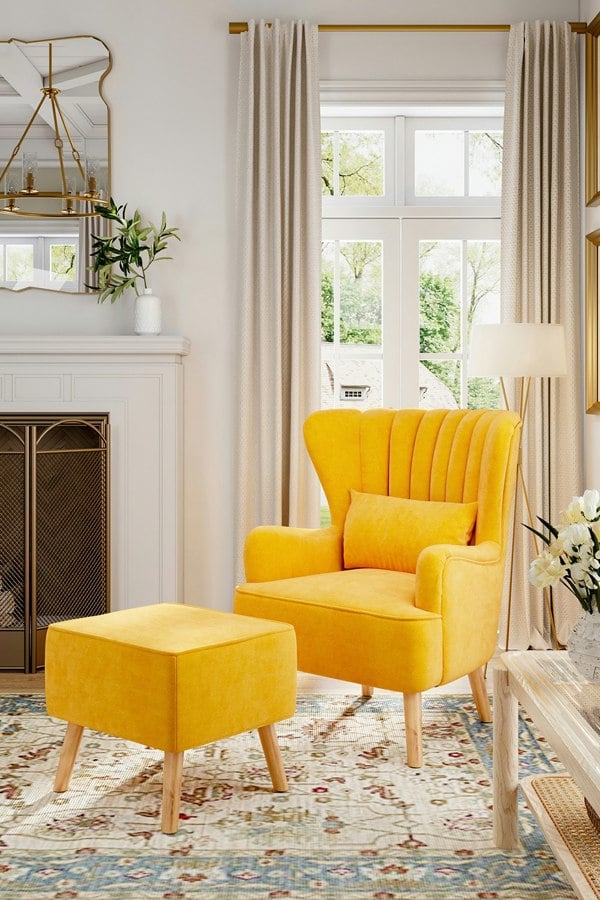 An extra padded cushion is included to enhance comfort, and the matching footstool offers a relaxed place to rest your feet. Finished with sturdy beech wood legs for strong support, this set is made to look as good as it feels in everyday use.