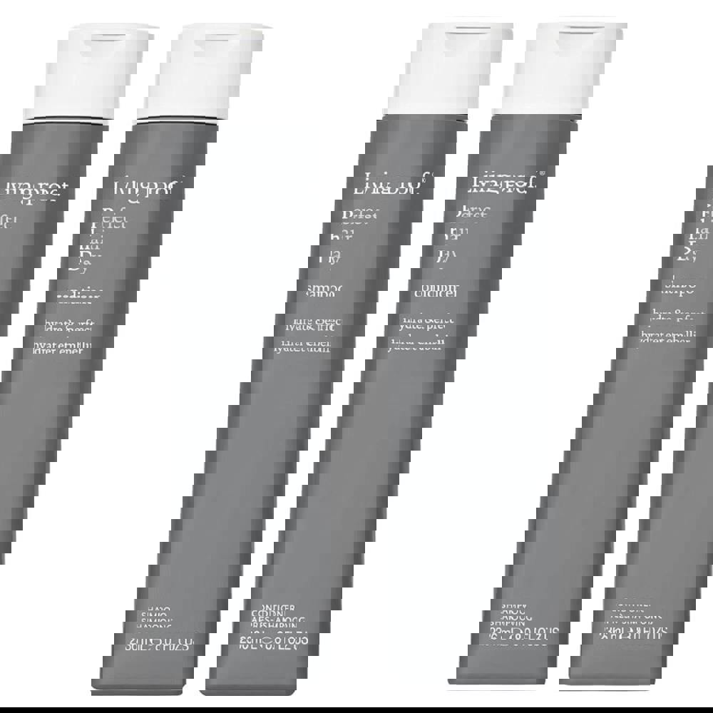 Living Proof Perfect Hair Day (PhD) Dry Shampoo 198ml cleans hair by absorbing oil, sweat, and odor while leaving hair with a touch of texture and a crisp, long-lasting scent and the conditioner hydrates, strengthens, and adds serious shine to give dull, dry strands an instant shot of vitality with every wash!