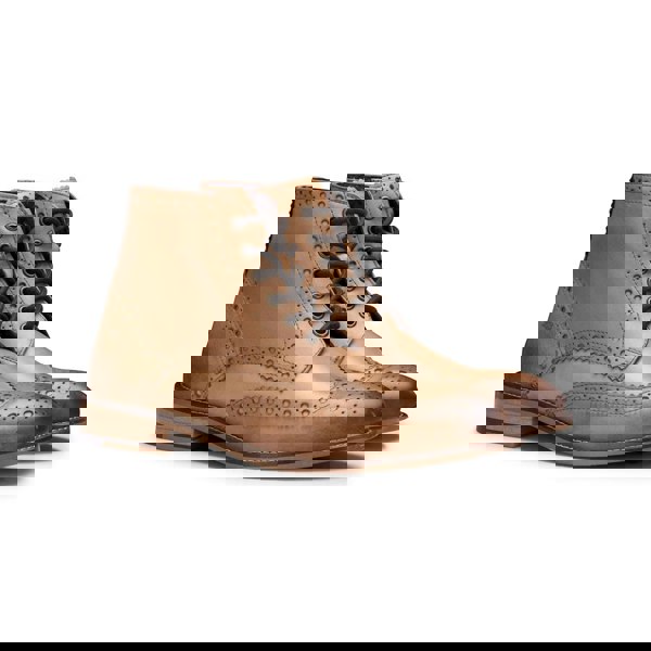 * Mens Real Leather Brogues Ankle Boots Finished In 2 Toned Tan Leather