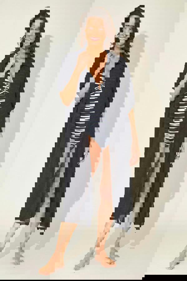 Ideal for warm-weather days by the water, the Long Button Through Beach Shirt is a lightweight cover-up with a full button-through front. It is cut in a cool-feel fabric and finished with elbow-length draped sleeves for relaxed coverage.