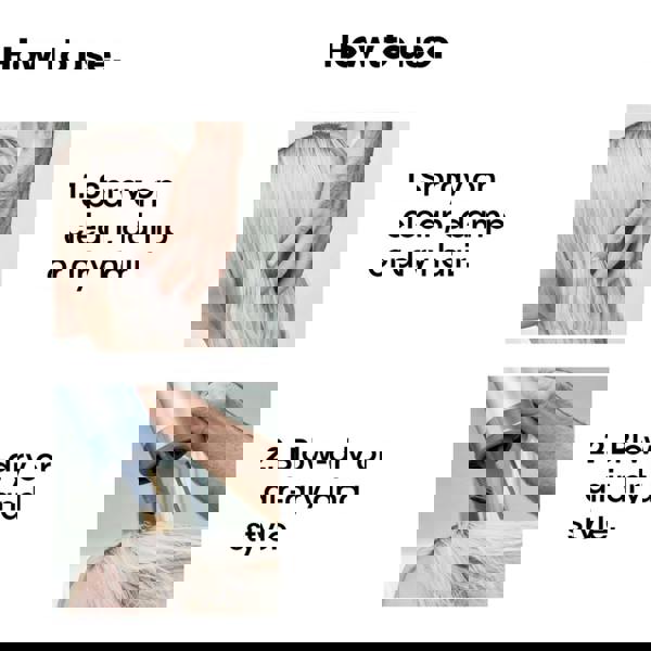 Spray on cleansed, damp or dry hair. Do not rinse. In case of contact with eyes, rinse them immediately and thoroughly