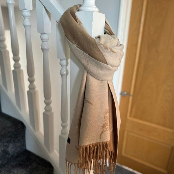 Add a touch of country charm to your wardrobe with this reversible Highland Cow Scarf. Crafted in a soft wool blend fabric, it features a detailed Highland cow motif throughout and a classic tassel edge. Generously sized, it can be styled as a cosy scarf, warm shawl, or oversized wrap, making it a versatile accessory for autumn and winter.