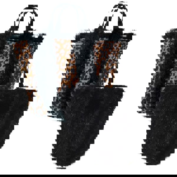 Style: Reversible tote bag – leopard print with sparkle / teddy faux-fur