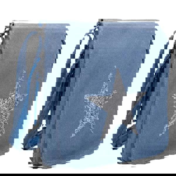 Part of the Staremvy Glitter Star Range, this medium Canvas Flap-Over Shoulder/satchel Bag is a fun yet practical everyday bag. Designed with a flap-over closure with magnetic button, it combines durable canvas with a sparkling glittery silver star print on the front, adding a playful touch to your daily style.
