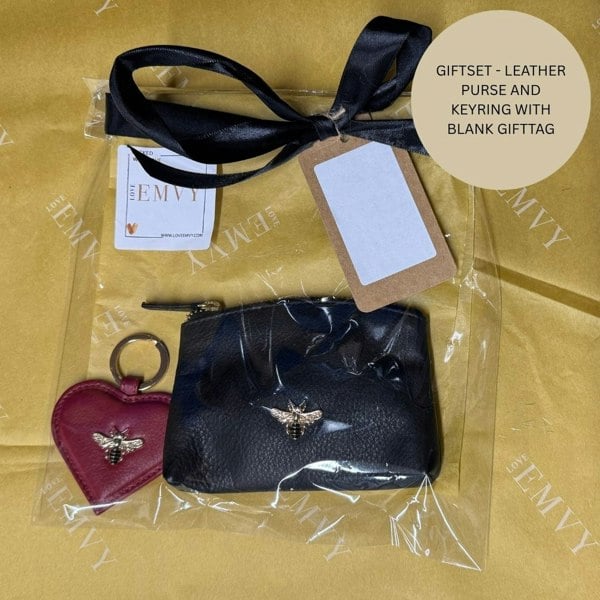 Gift Set – Leather Bee Coin Purse and Keyring