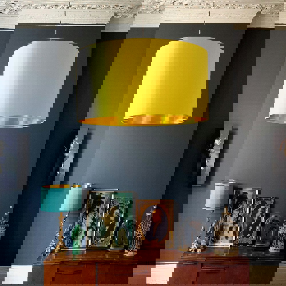 Make a statement with our brightly coloured Acid Yellow lampshade and vibrant gold foil lining. Enough to brighten the dullest of days.