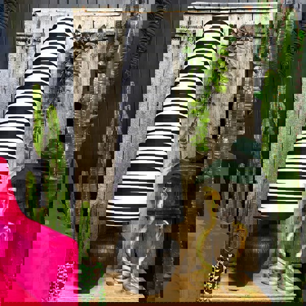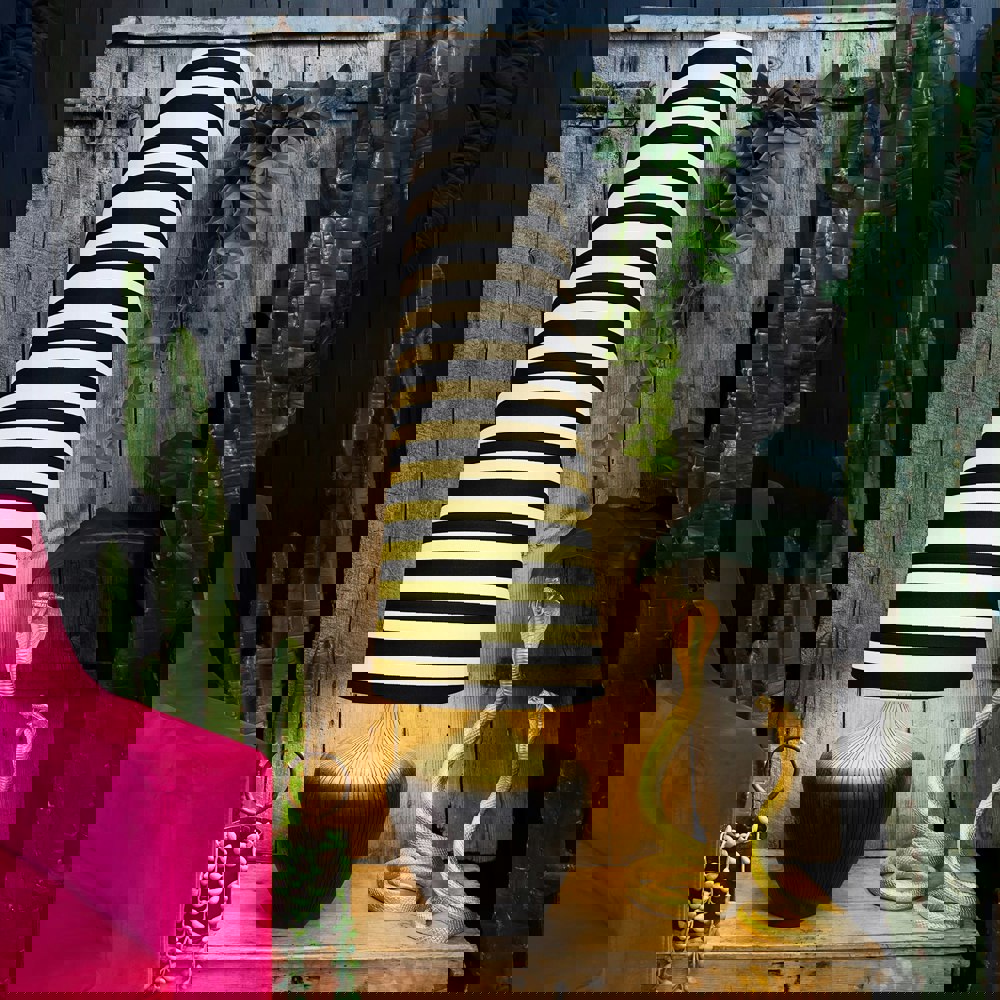 Crafted with love by the talented team at Love Frankie, each lamp is a bespoke work of art, featuring our signature tilted stripe velvet fabric in a delightful peach and indigo palette.