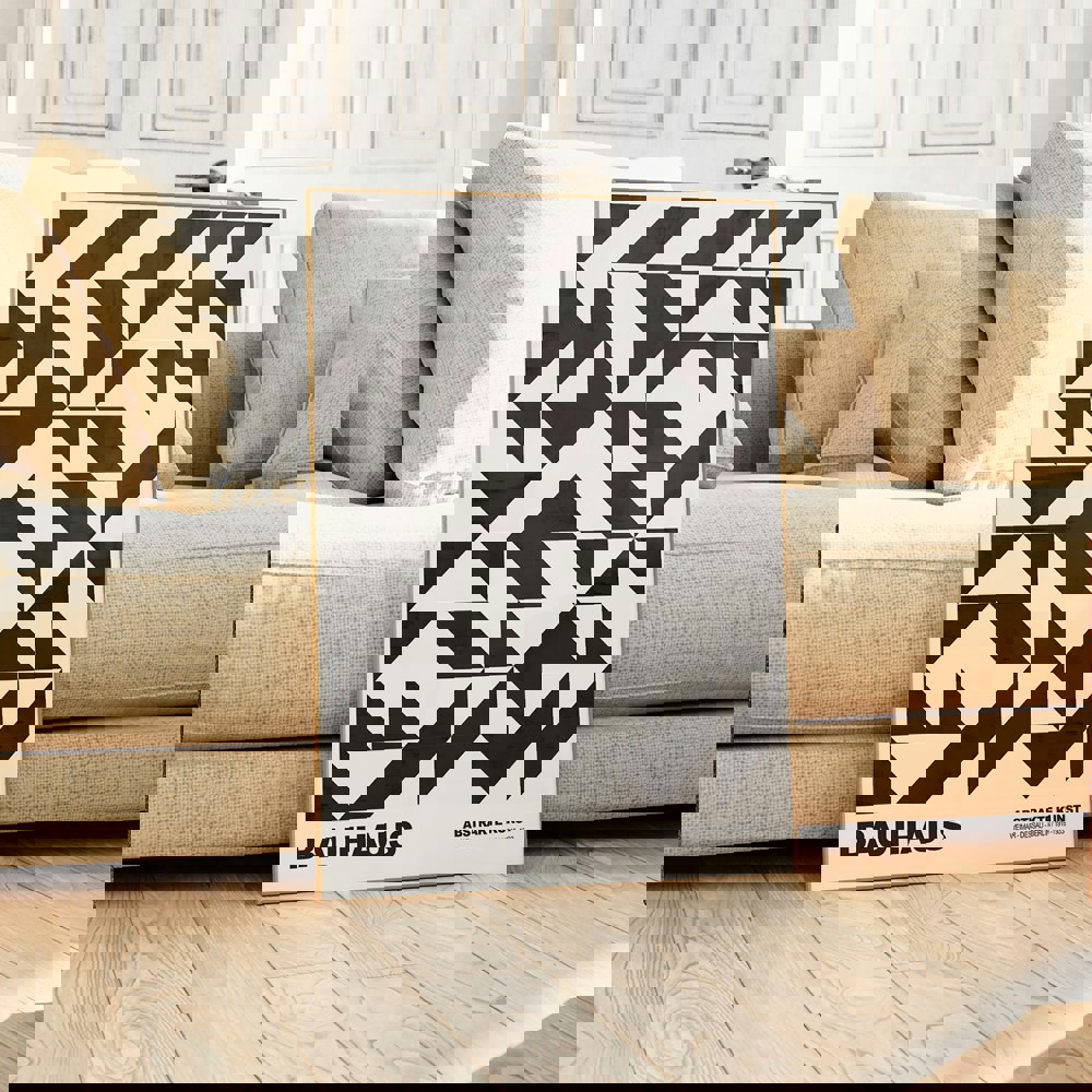 Elevate your space with the captivating Monochrome Abstract Bauhaus Art Print Poster. Let its mesmerising triangular patterns and harmonious balance inspire you to cultivate a sense of serenity and focus in your surroundings. Pair it with the complementary "Waves" and "Shapes" prints to create a visually stunning Bauhaus-inspired gallery wall that will ignite your creative spirit.