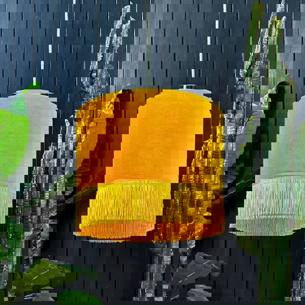 Add a touch of whimsy and warmth to your space with our Butterscotch Velvet Lampshade With Gold Foil Lining and Fringing. This handmade beauty is lovingly crafted to order by skilled artisans here at Love Frankie in the UK. With its delectable Butterscotch velvet exterior and stunning Gold foil lining, this lampshade is almost good enough to eat!
