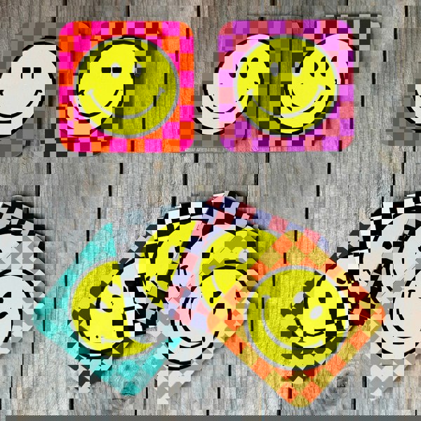 Transform your coffee table into a vibrant display of joy with the Checkmate Checkerboard Smiley Face Coasters from Love Frankie! These delightful coasters are more than just practical – they’re an expression of your personality and style. Each coaster features the iconic smiley face, guaranteed to put a smile on your face every time you set down your drink.