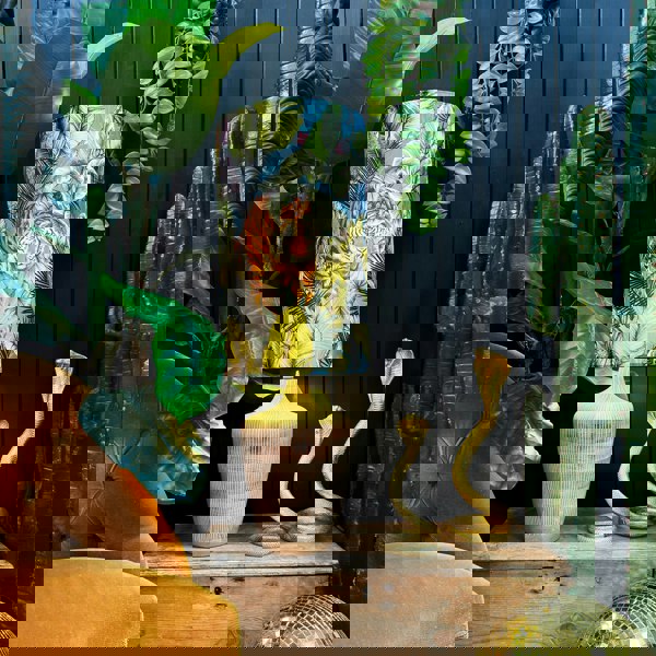 Crafted with no lining, the print of the fabric truly shines when the light is illuminated, creating a cosy, nature-inspired ambiance in your living space. Whether you’re a jungle lover or simply seeking to add a touch of magic to your home, this oversized tube lampshade is an absolute must-have.