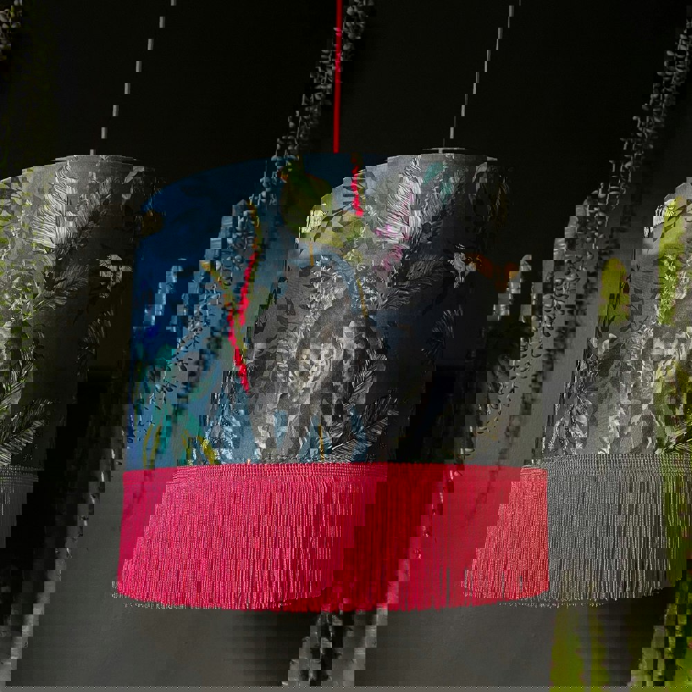 Our handmade velvet lampshades are paired with Hot Pink fringing tassels giving an opulent, vintage inspired quality to the DEADLY NIGHT SHADE collection.
