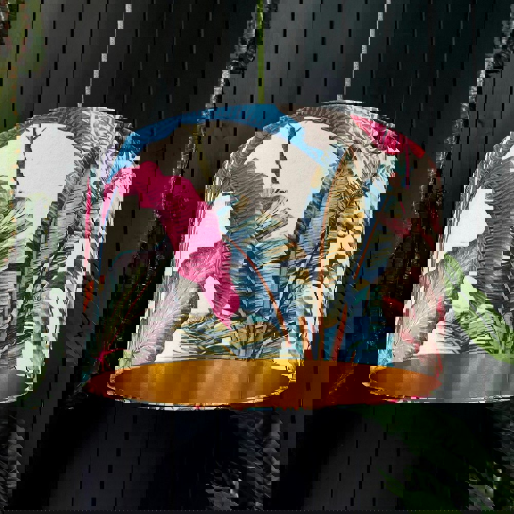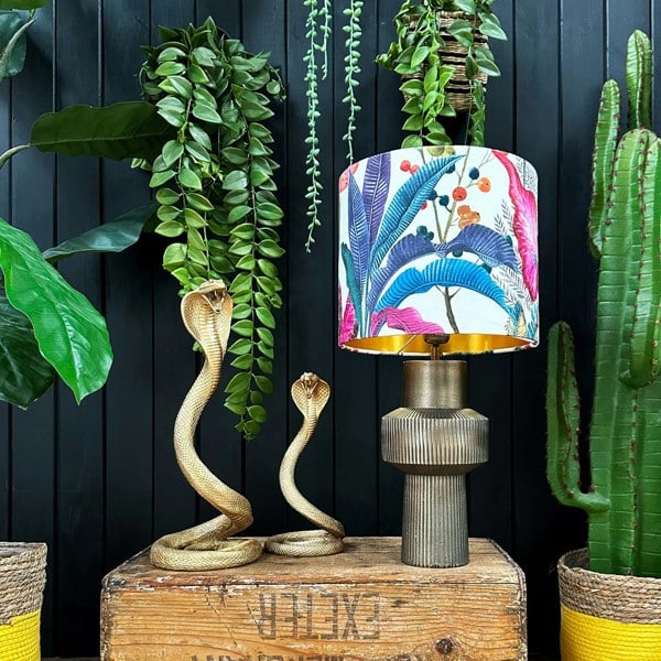 Get trippy with this tropical Ice Jungle Lampshade paired with our ambient metallic Gold Lining. The brightest and boldest lush velvet fabric in our Animalesque Collection is handmade to order by the Love Frankie team.
