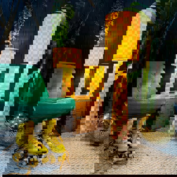 Our Lemon and Clementine Checkerboard Velvet Fabric in Marmalade, showcases alternating squares of Yellow and Orange to enliven your interiors. Illuminate your space with Love Frankie’s Handmade Checkerboard Velvet lamps – where timeless design harmoniously meets contemporary aesthetics for a home radiating 70s sophistication.