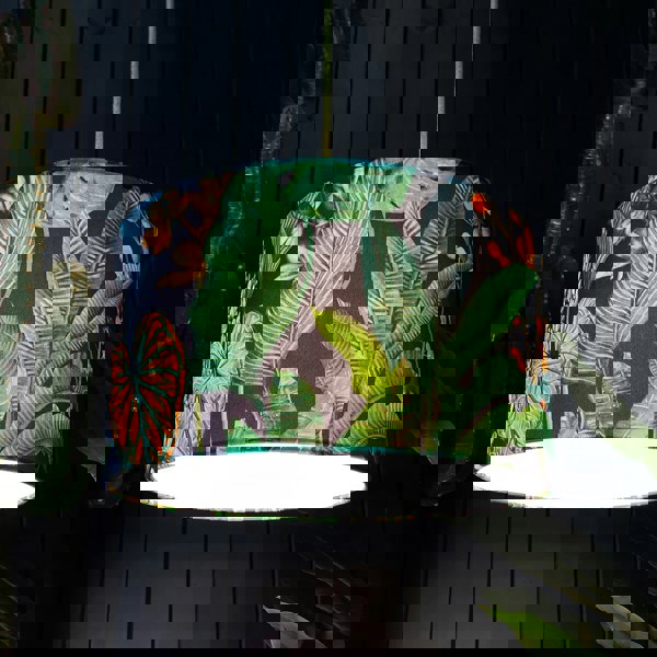 Take a trip into a dreamlike Tropical Rainforest, brimming with inky flora and a never ending abundance of psychedelic foliage. Our Rainforest lampshade in all its zesty blue goodness is made from heavy weight luxury velvet and mounted on white PVC allowing the inside of the shade to stay crips and white. When lit, the light will shine through the shade, highlighting the leaves and bringing the jungle rainforest scene to life!
