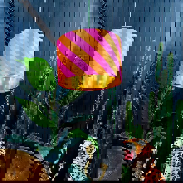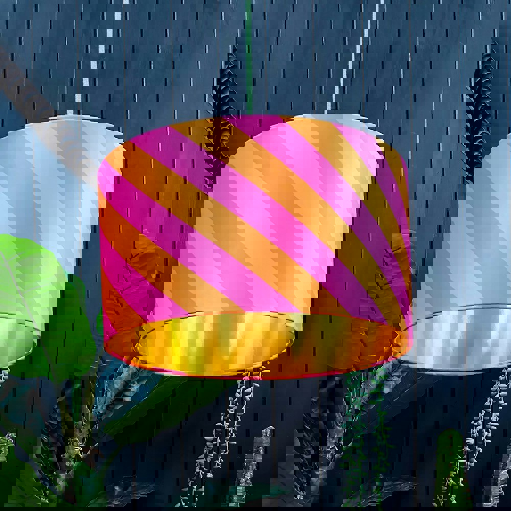 Behold the mesmerising Helter Skelter Tutti Frutti Lampshades! Handcrafted to radiate a carnival of colours in your living space, these drum lampshades are not just a statement piece but a symphony of fun and flair. Let the whimsical Orange and Pink stripes bring a burst of circus magic into your home decor. It’s not just a lampshade; it’s a spectacular extravaganza waiting to light up your world!