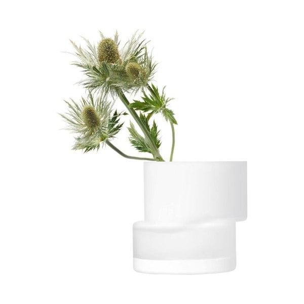 A mouth-blown vase with stacked, geometric shape inspired by post-modern architecture.