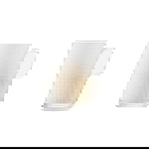 A beautifully crafted mouth-blown glass tealight holder featuring a partially textured finish and a striking, thick slab handle formed entirely by hand