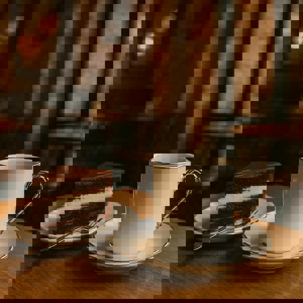 Platinum detailing is carefully applied by hand around the rim, on the handle, and along the saucer for a luxurious, reflective finish