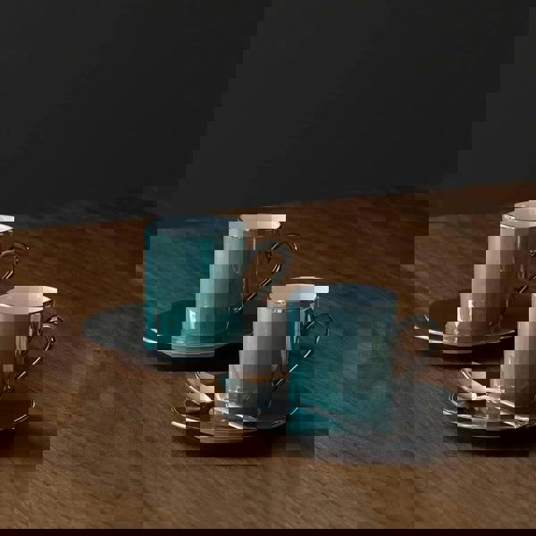 Platinum detailing is carefully applied by hand around the rim, on the handle, and along the saucer for a luxurious, reflective finish