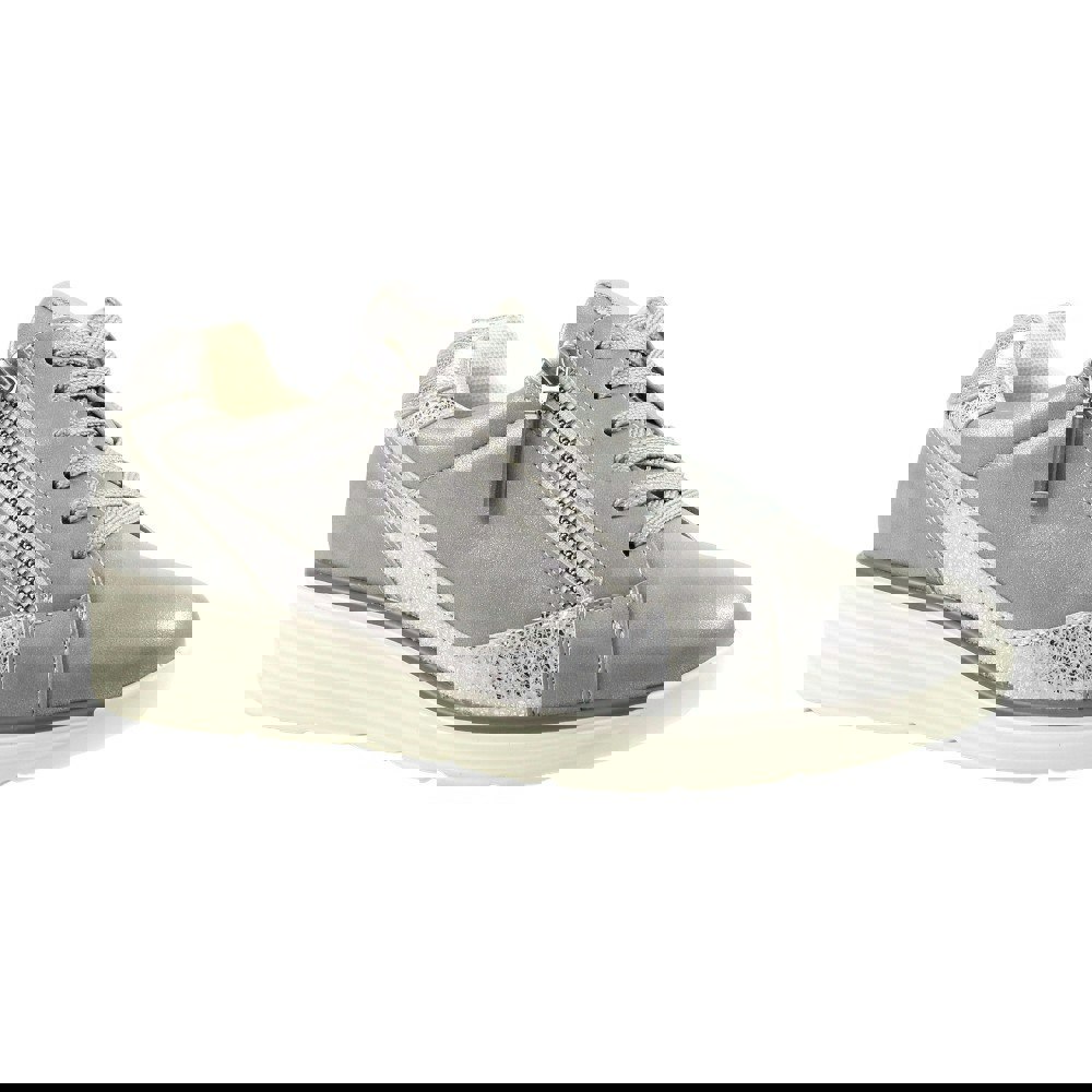 Finished with metallic logo detailing, this lace-up style uses six eyelets and includes a faux zip detail for a layered look.