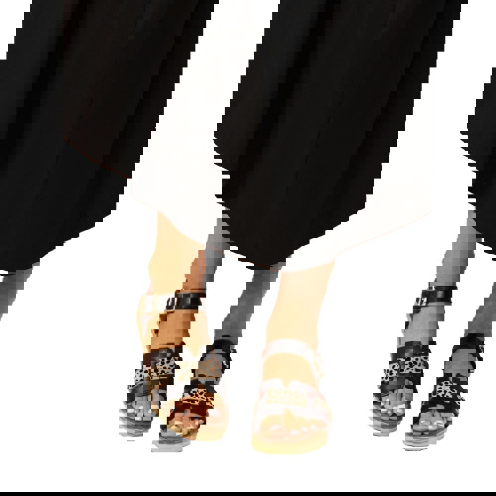 These Lunar Carla sandals bring a flat profile with an open toe and leopard print design. A buckle strap fastening secures the fit, while a padded insole adds comfort underfoot. The upper, lining and outsole are made from PU (polyurethane) and synthetic materials, keeping the finish consistent throughout.