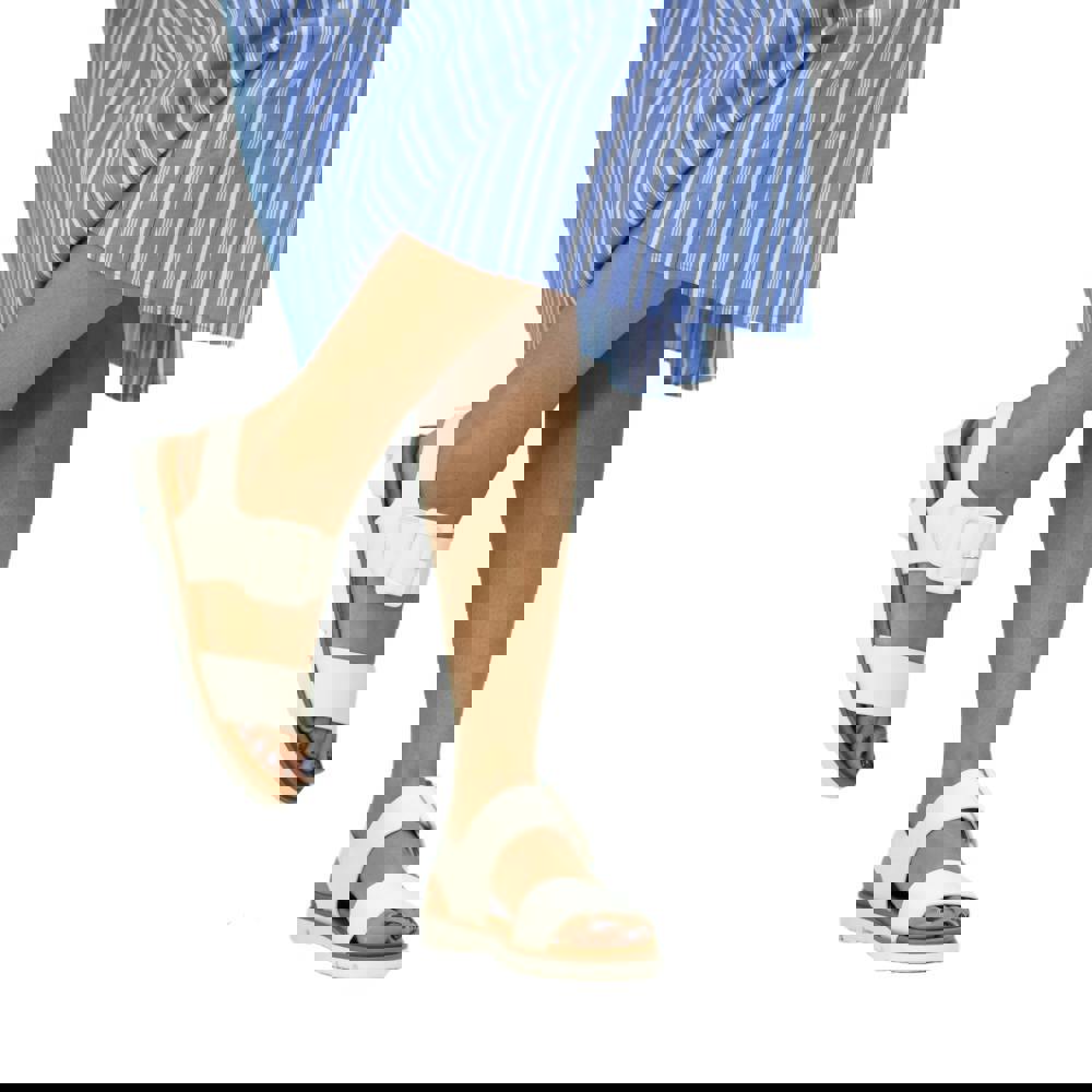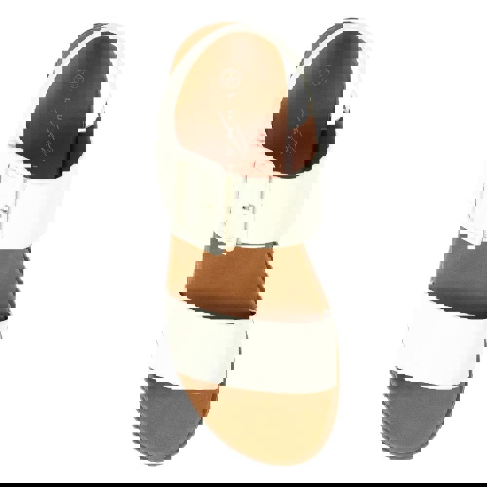 Lunar Cher sandals in white offer a clean, open-toe profile with a flat heel and a simple hook and loop strap fastening. The upper combines PU (polyurethane) and synthetic materials, matched with a PU (polyurethane) and synthetic lining. A padded insole adds comfort underfoot, while the midsole is made from synthetic material.