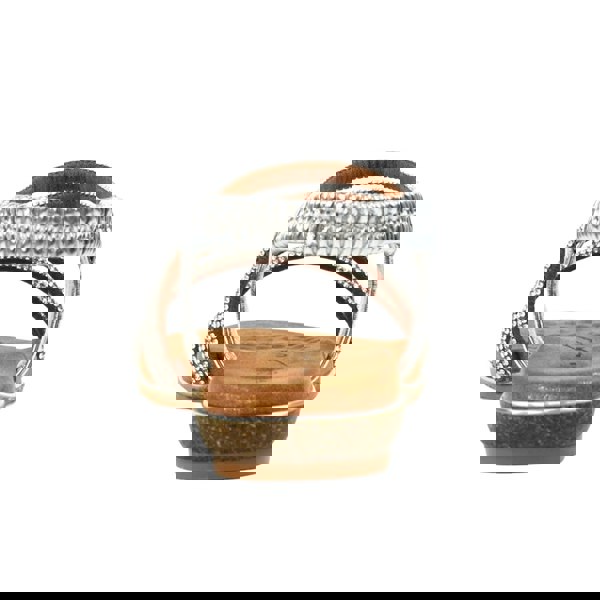 Lunar Cortez sandals in silver with an asymmetric design and diamante detailing. The open-toe shape and flat heel create a clean, minimal profile for warm-weather wear. Elasticated straps provide the fastening, keeping the look streamlined.
