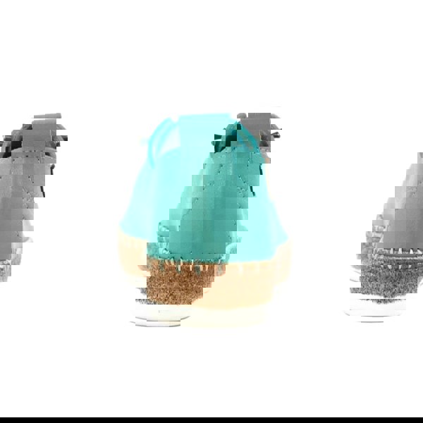 Lunar Evie leather plimsolls in turquoise with a logo design and a flat wedge sole. The upper and lining are made from leather, paired with a padded insole for added comfort underfoot. A four-eyelet lace-up front sits alongside elasticated detailing to support an easy, secure fastening.