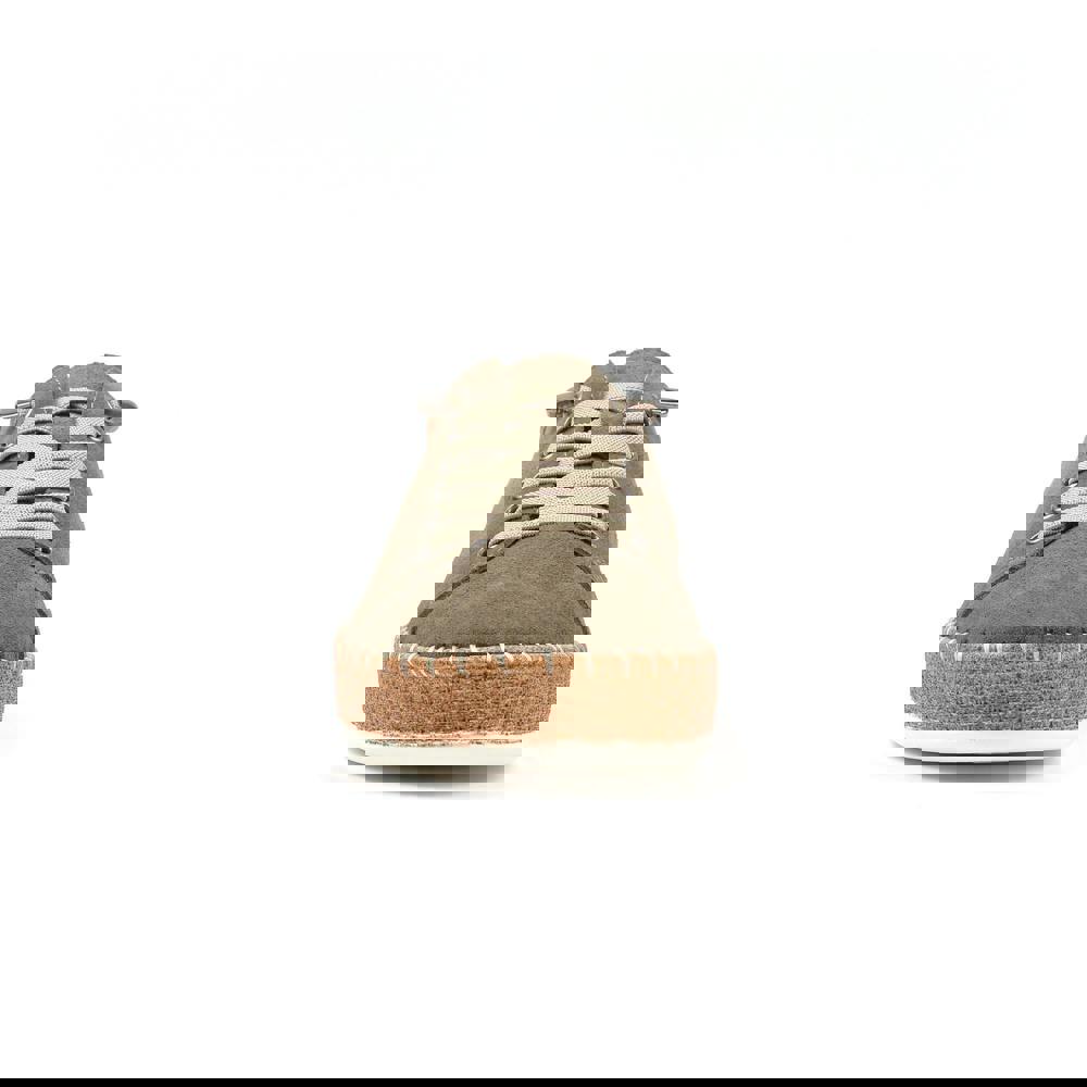 Lunar Maddison II suede plimsolls in khaki with a plain finish and a round toe. The upper is made from cow suede leather and the lining is leather. A lace-up fastening runs through six eyelets for a secure fit. The flat outsole is made from PU (polyurethane) with a stitched construction and a textured surface.
