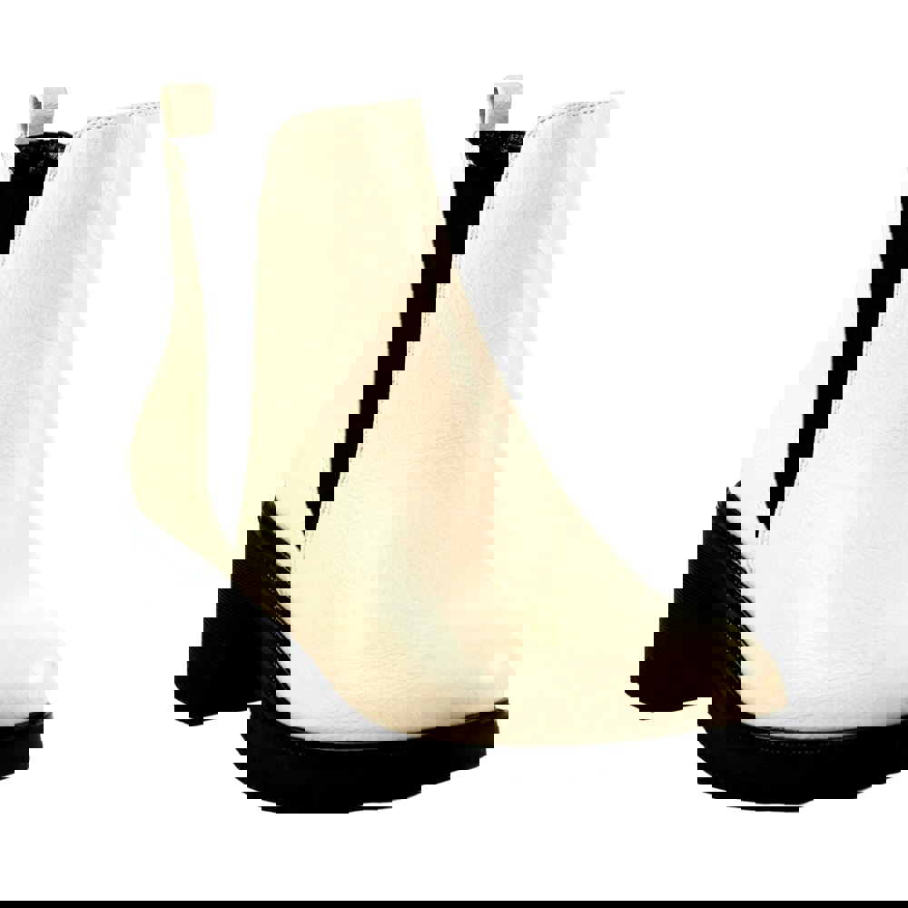These ankle-high boots combine a contrast design with a round toe and a block heel. The upper is made from faux leather, with a textile lining and a padded insole. A slip-in fastening is supported by an elasticated gusset, while a pull tab helps with on and off.