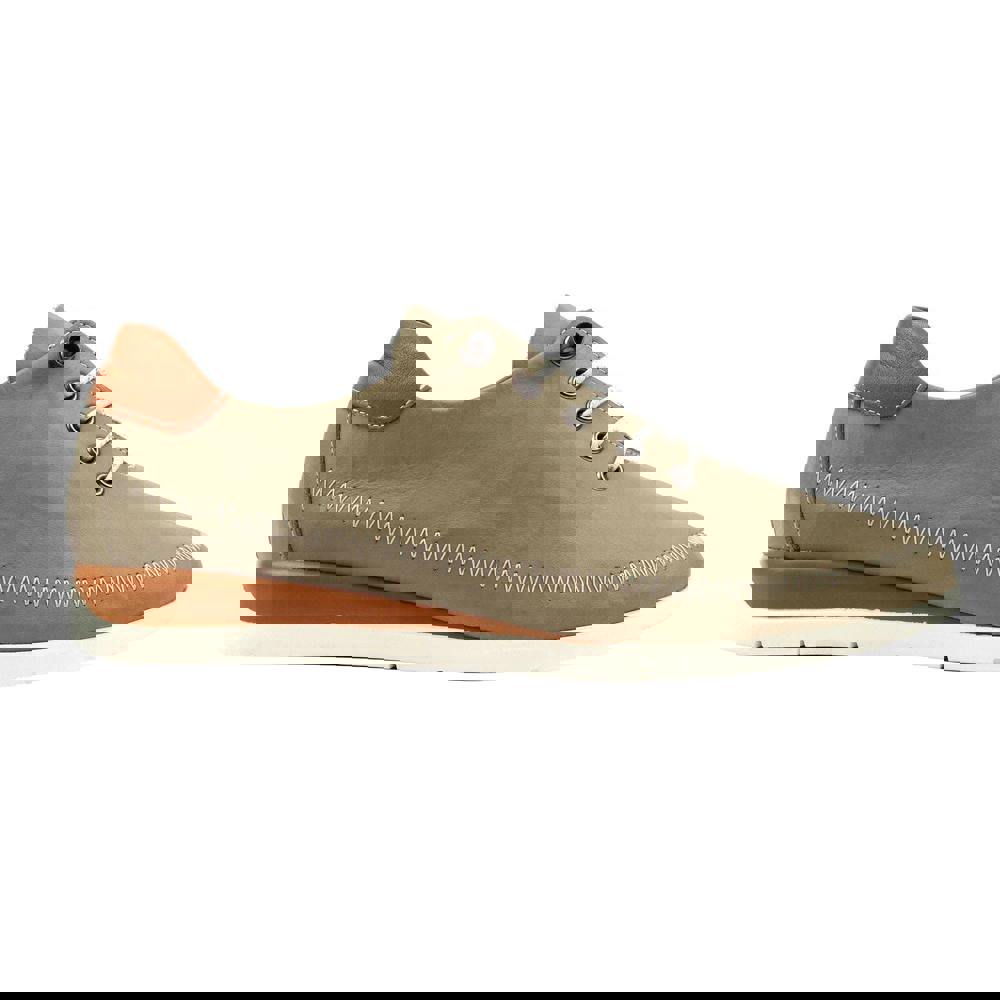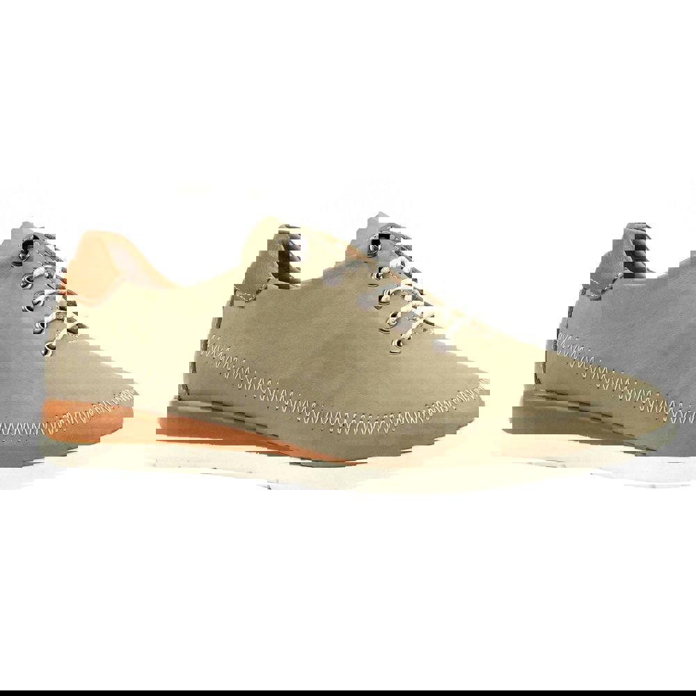 Lunar Penelopy trainers bring a clean, low-profile look with a khaki leather upper and subtle metallic detail. Built with a round toe and flat sole, they offer a streamlined shape for everyday wear. The leather lining adds a refined finish, while the rubber outsole provides a practical base.
