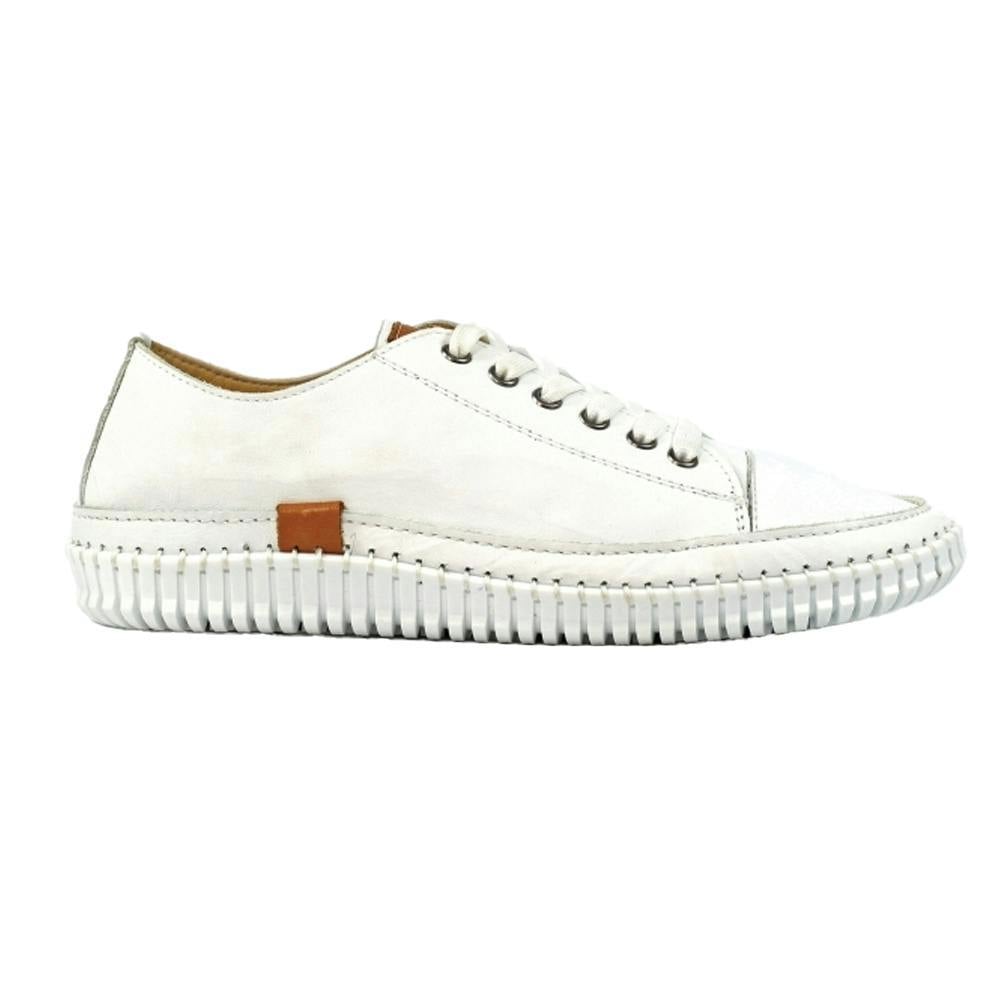Lunar Truffle II leather plimsolls in white with a lace-up fastening through six eyelets. The upper and lining are made from leather, with a padded insole for added comfort underfoot. A semi-round toe and flat heel keep the profile clean and easy to wear.