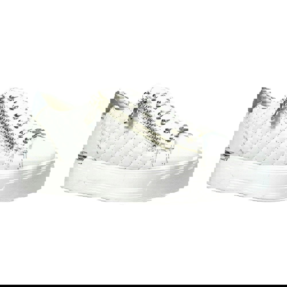 Lunar Xenon trainers bring a low cut profile with a round toe and a chunky synthetic outsole. The upper and lining are made from synthetic material, paired with a padded insole for added comfort underfoot. Finished in white, the design is detailed with stitched construction and shiny metallic accents, including gold detailing.