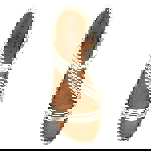 A low wedge sole adds subtle lift, while the padded insole provides extra underfoot cushioning. An elasticated ankle strap fastening keeps the fit secure and easy to wear.
