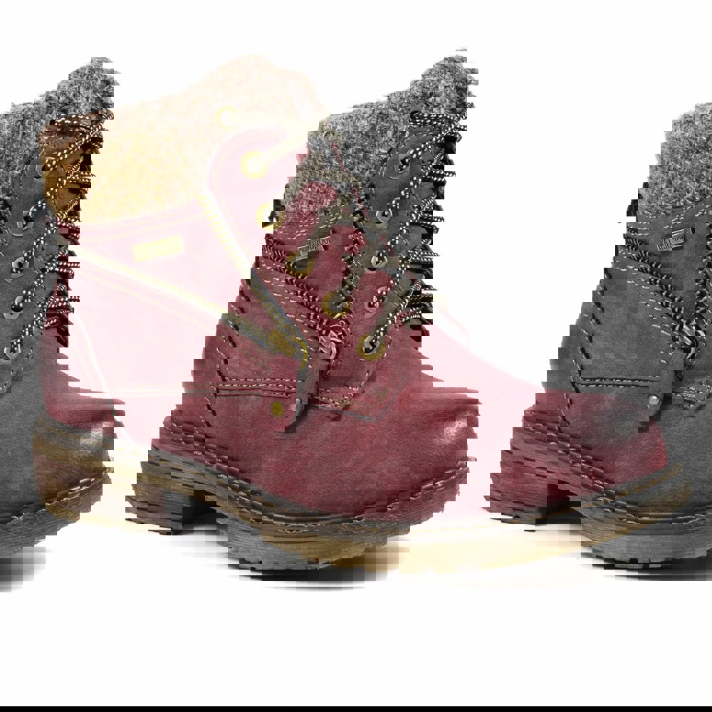 These ankle boots combine a plain finish with practical detailing for everyday wear. The upper is made from faux leather and finished with a knitted collar. A lace-up fastening secures the fit, while a faux zip adds a streamlined look. The round toe keeps the profile classic, and a block heel provides a defined silhouette.