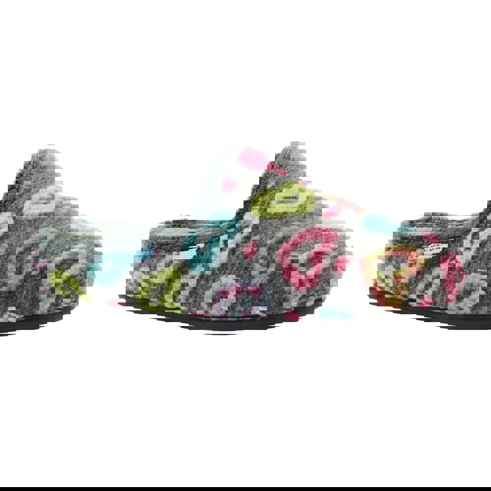 Finished in grey, the round-toe silhouette is detailed with heart and logo styling, making them a distinctive option for indoor wear.