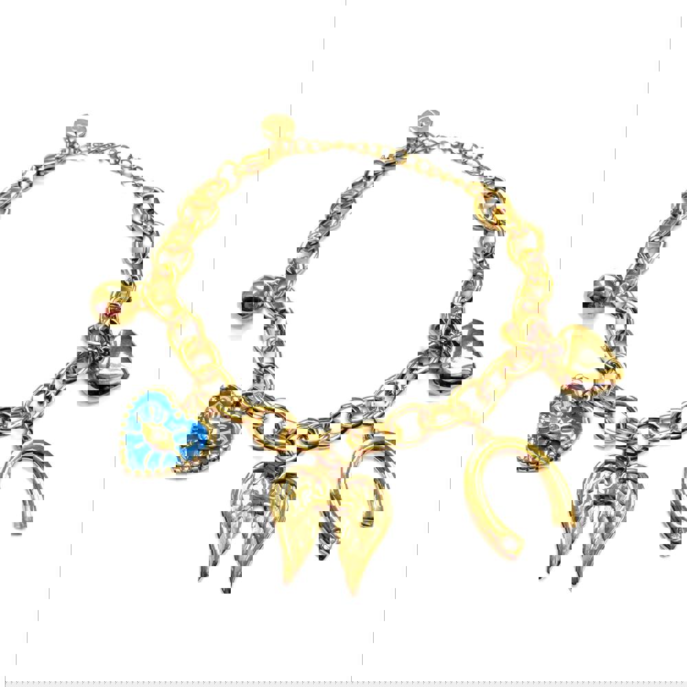 Each charm moves gently as you wear it, catching the light and adding character without feeling heavy or overdone. The combination of polished gold and soft enamel gives the bracelet a playful, collected feel, like a piece built over time, each charm telling its own little story.