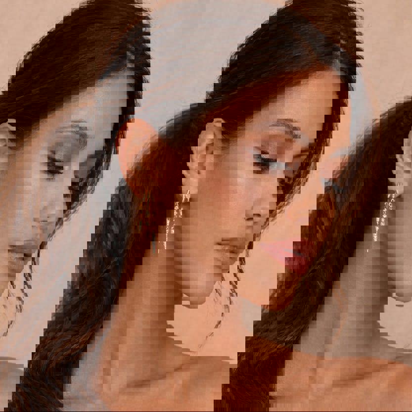 They’re long and elegant without feeling heavy, designed to frame the face and add instant impact. The mix of smooth gold and subtle sparkle keeps them feeling contemporary rather than overly dressy — perfect for evenings out, events, or elevating a simple outfit when you want something sharper.