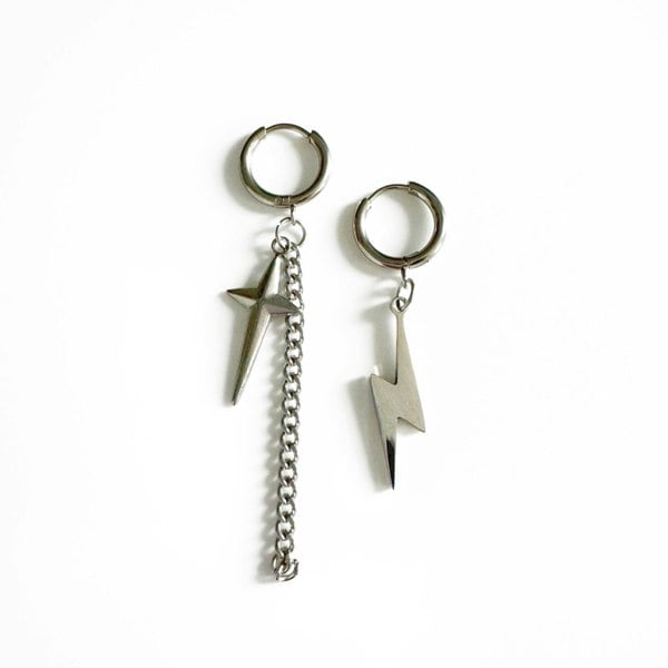 Stand out with these unique Atlas Lightning Bolt Mismatch Dangle Earrings! Featuring a striking cross and lightning bolt design, these earrings are sure to add a touch of edge to any outfit. Don't miss out on this bold and daring accessory.
