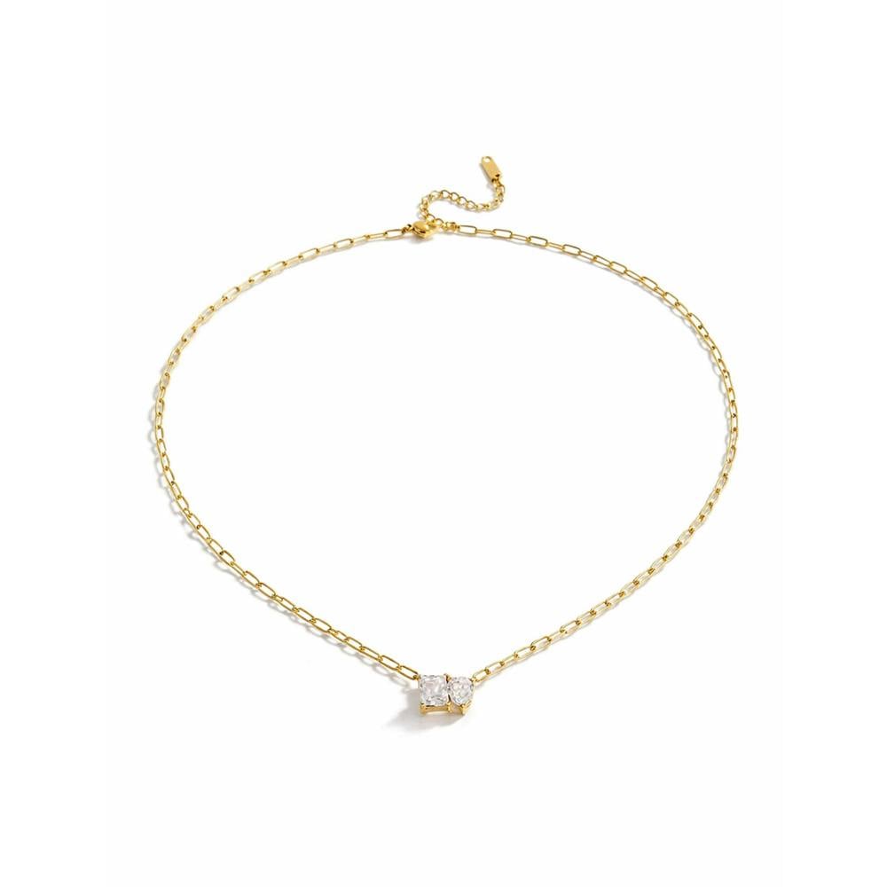 The Bexley Luxe Jewel Necklace is a refined 18k gold plated chain necklace featuring a sparkling double crystal centre detail. Designed for effortless everyday wear, this delicate gold necklace adds subtle brilliance to any look.